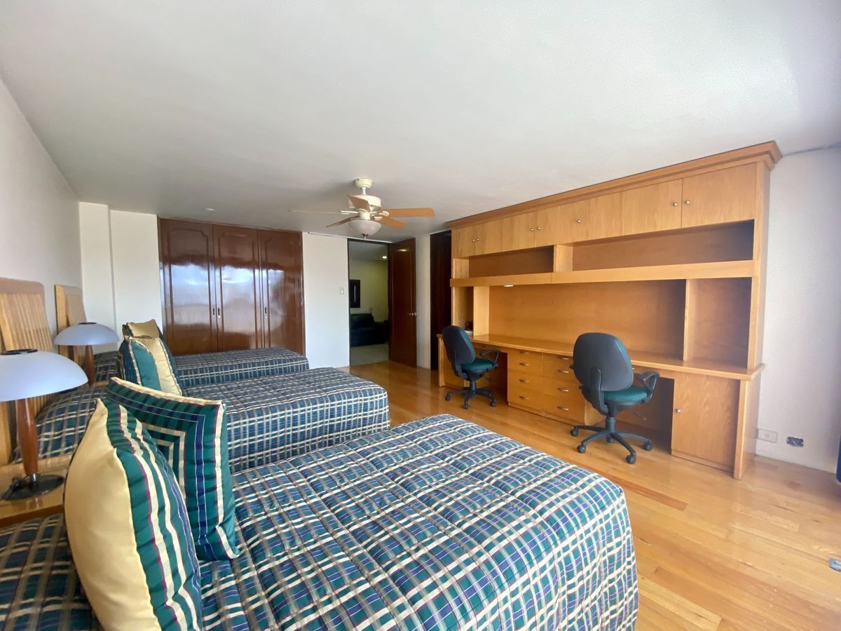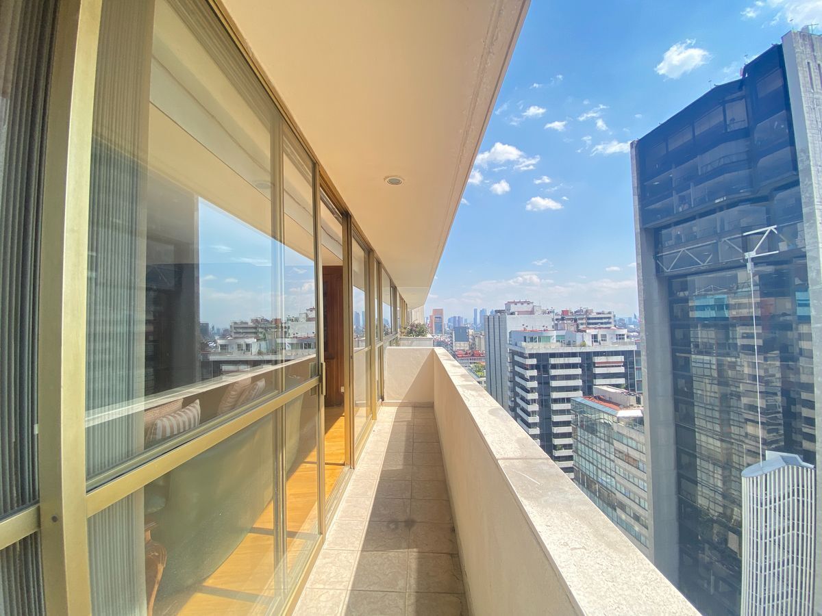 Piso 15 Con una superficie de 289m2. El departamento se encuentra amueblado y se puede cerrar así en la negociación. 3 amplias recamaras. Recibidor. Estudio. Star tv. Cocina integral con desayunador. Amplia sala comedor con vista panorámica a la Ciudad y balcón. Cuarto de servicio con baño completo. Cita previa por favor Precio